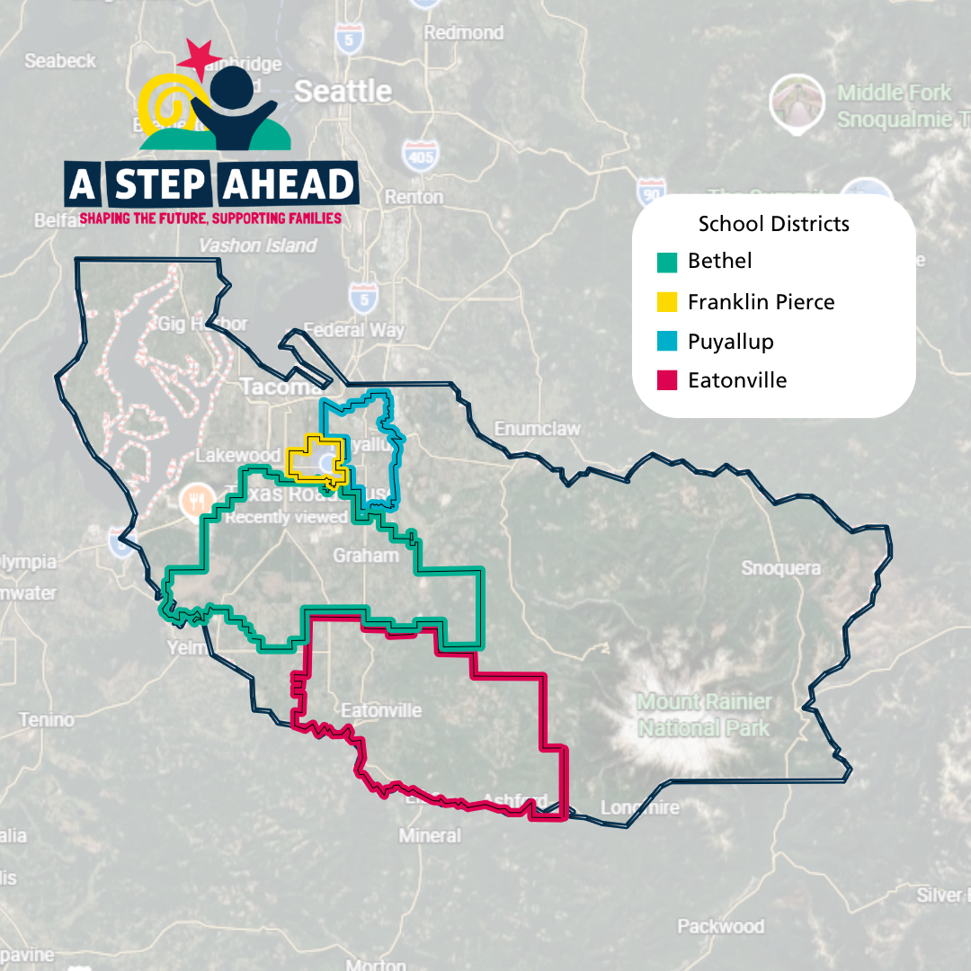 Eligible children must be under the age of three and live in Pierce County. A Step Ahead welcomes the enrollment of all eligible children regardless of race, religion, nationality, or ability to pay.